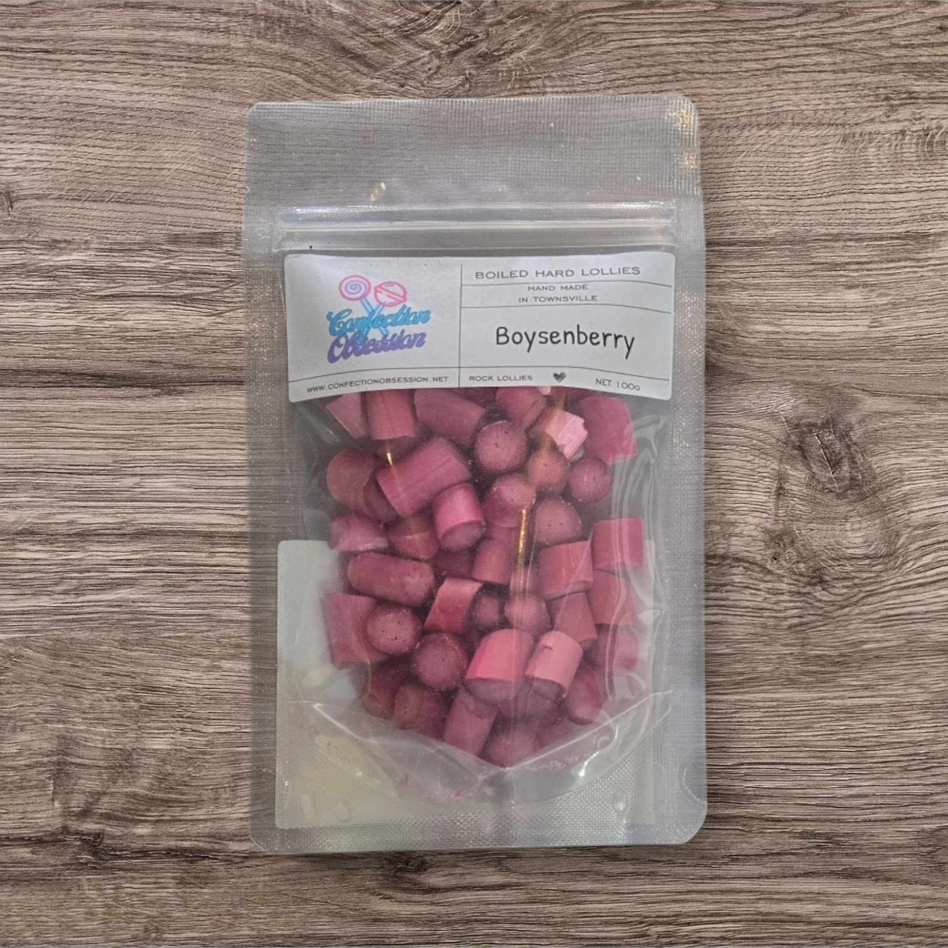 If you like the syrup swirl in boysenberry ice cream, then this Boysenberry flavoured boiled sweet is right up your alley. No tartness, just all sweet.